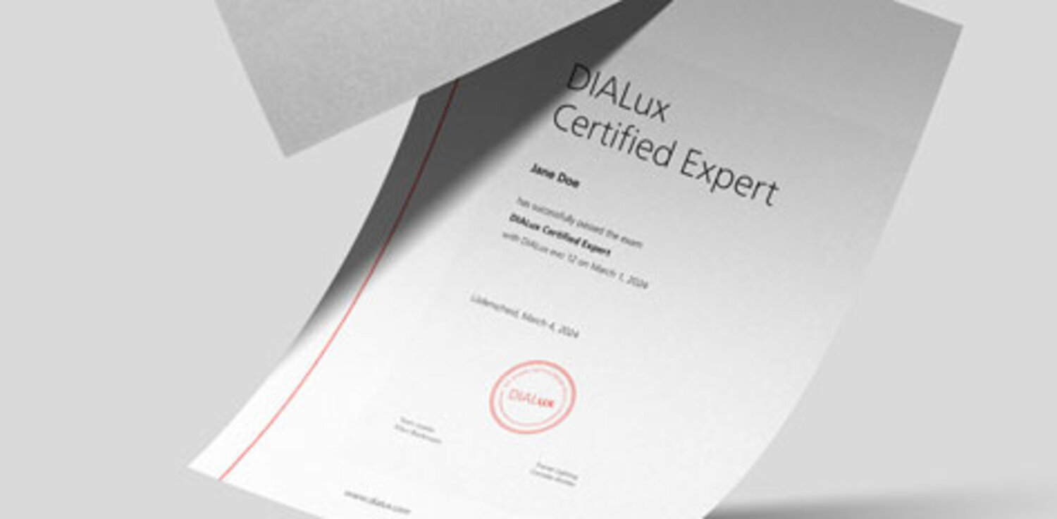 Bestätige deine Kompetenz im Bereich Lichtplanung mit DIALux. Zeige dein Können für Bewerbungen, gegenüber Kunden und bei deinen Projektpräsentationen. Werde DIALux Certified Planner oder DIALux Certified Expert.
