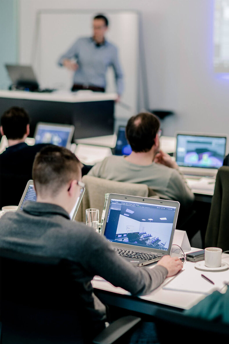In unseren Seminarräumen kannst du das erlernte Wissen in der Praxis anwenden. Du kannst Ergebnisse testen, die Auswirkung live erleben und mit Produkten verschiedener Hersteller experimentieren. Unser Weißes & Schwarzes Labor und das Automation Lab bieten dir eine Menge Möglichkeiten.