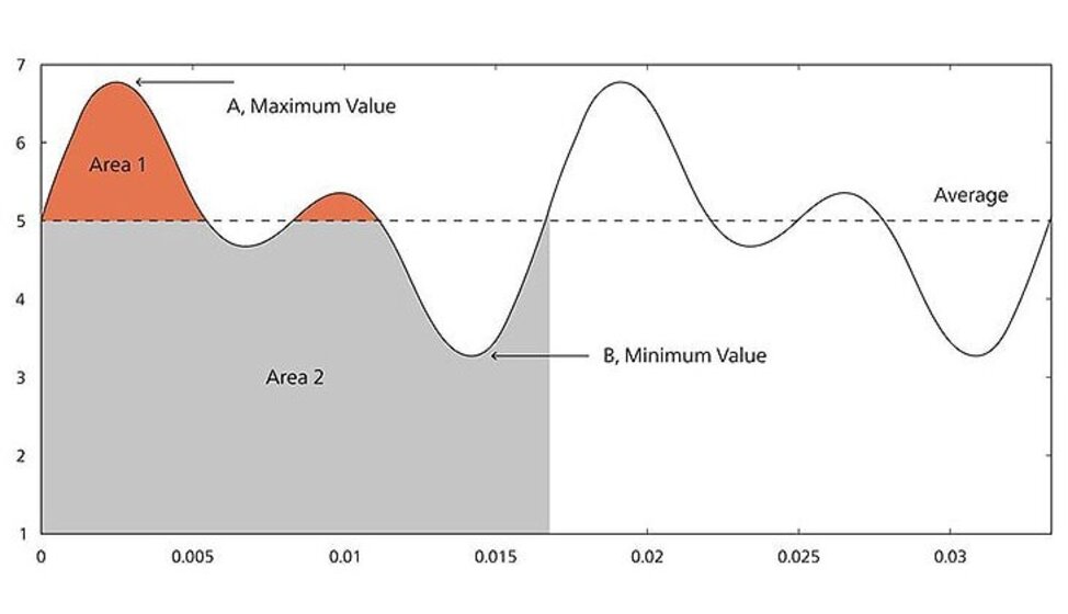 Not only the frequency, which can lead to perceptible flicker below 80 Hz, but also the Flicker Index (FI) and the Modulation (Mod %) are listed as further criteria for evaluating flicker. The FI, which can already be found in some data sheets for LED luminaires, also shows low fluctuations in the waveform. A median value for the complete period is set and subsequently an evaluation is made of what percentage of operation is above the median value.