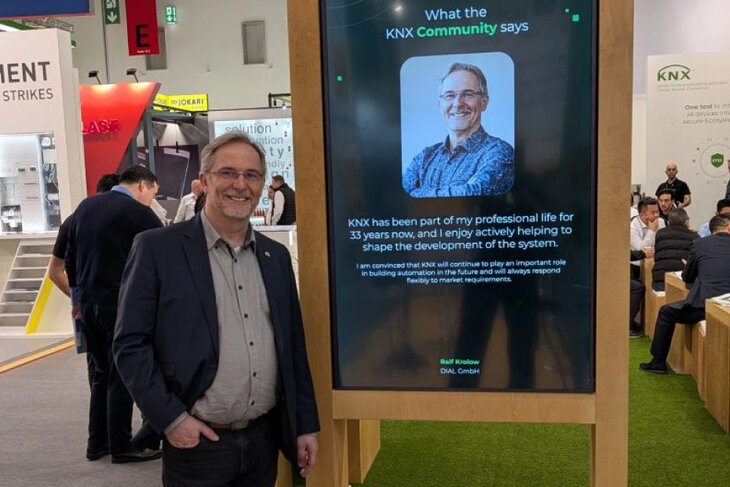 Unser Trainer und KNX-Spezialist Ralf Krolow war in der spannenden Woche auf der Light + Building 2026 nicht nur an unserem DIALux Stand präsent. Als langjähriges Mitglied der KNX-Community wurde er außerdem auf dem Stand der KNX Association vorgestellt: eine besondere Anerkennung für sein Engagement im Bereich der Gebäudeautomation. Seit über 33 Jahren ist KNX fester Bestandteil seines professionellen Arbeitslebens. Diese Erfahrung bringt Ralf tagtäglich in unsere Schulungen ein.