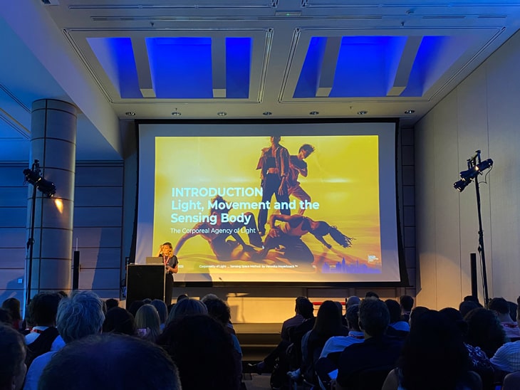 Willie Duggan, Geschäftsführer von Willie Duggan Lighting, plädierte leidenschaftlich für eine Neuausrichtung des Lichtdesigns, die Gesundheitsaspekte stärker berücksichtigt, insbesondere circadiane Rhythmen und die langfristigen Folgen von künstlichem Licht. Er präsentierte überzeugende wissenschaftliche Daten, die die entscheidende Bedeutung der richtigen Beleuchtung für die Gesundheit belegen. Flick Ansell, stellvertretende Direktorin bei AECOM, ergänzte diesen Ansatz mit wichtigen Forschungsergebnissen zum Lichtdesign für neurodiverse Nutzergruppen. Ansell zeigte anschaulich, wie bestimmte Lichtverhältnisse das Verhalten und Wohlbefinden sowohl von neurodivergenten als auch von neurotypischen Menschen verbessern können. Dr. Shelley James, „The Light Lady“, vertiefte dieses Thema und zeigte den faszinierenden Zusammenhang zwischen Neuroarchitektur und intelligentem Lichtdesign auf. An praktischen Beispielen verdeutlichte sie, wie Licht genutzt werden kann, um Räume zu schaffen, die geistige Klarheit, Konzentration und emotionale Balance fördern. Veronika Mayerböck, Lichtplanerin und Architektin aus Wien, brachte eine innovative Perspektive auf die Wahrnehmung und körperliche Erfahrung von Licht in die Diskussion ein. Anhand ihres Konzepts „Sensing Space” erklärte sie, wie eine ganzheitliche, körperorientierte Wahrnehmung die Gestaltung von Lichtlösungen beeinflusst. Mit inspirierenden Beispielen aus ihren Lehrprojekten zeigte sie, wie Lichtdesign nicht nur den Sehsinn, sondern den ganzen Körper anspricht und damit neue Möglichkeiten für ganzheitliche und empathische Gestaltungsprozesse eröffnet.