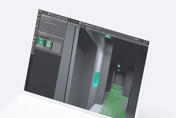 - Emergency lighting for escape routes: Positioning and editing of an escape route, escape route luminaires