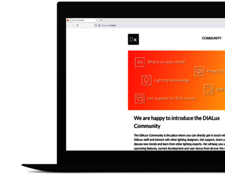 The newsletter informs you about DIALux, lighting design, technology and control. We keep you up to date regularly – about once a month: